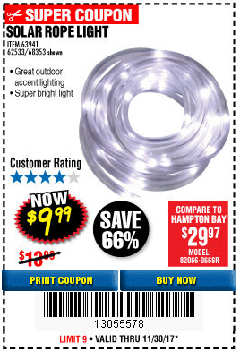 Harbor Freight Coupon DB - SOLAR ROPE LIGHT - $ 0 The best Harbor Freight coupons, at your fingertips.