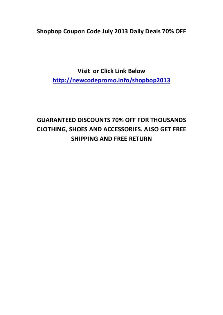 › view › shopbop15% Off Shopbop Coupons, Promo Codes + 1% Cash Back Save with 30 Shopbop Offers. 15% OFF Code 15% Off Sitewide Verified Added by peggie12345 Show Coupon Code See Details 15% OFF Code 15% Off Sitewide Added by Mik19 70 uses today Show Coupon Code See Details 1% BACK Online Cash Back 1% Cash Back For Online Purchases Sitewide Verified 1 use today Get Reward See Details UP TO 60% OFF Sale