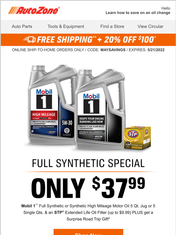 NAPAonline.com Coupon, Promo Codes: 10% Off - September 2022 Discounts average $20 off with a NAPAonline.com promo code or coupon. 13 NAPAonline.com coupons now on RetailMeNot. 50% Off Autozone.com Promo Codes & Coupons - Sep. 2022 autozone.com promo codes CODE Coupon Verified 21 People Used Take $5 Off $35 Or More Spend much less on your dream items using this autozone.com promo codes. Check merchant site for more information. OFF SHOW CODE SAVE $13 autozone.com promo codes CODE Coupon Verified 16 People Used Get $13 Off $75+ Purchase With Promo Code AutoZone Coupons | 30% Off In September 2022 - Forbes Official AutoZone coupons and offers for up to $20 off Save on everything from oil to car parts and save up to $20 off your purchase by using these AutoZone coupons. Get Deal $20 OFF 41 uses today... 44 autozone 30 off coupon - Blogger Autozone 30 Off Coupon 2022 - hotdeals.com Autozone 30 Off Coupon - Limited Sale For July Enjoy best price with this Free Shipping AutoZone Coupon code. Check all AutoZone promos and coupons for up to 50% OFF. Treat yourself on any purchase. Expires: Jul 20, 2022 3 used Last used 7 days ago Get Deal 20% Off Ship-To-Home Orders Of $100 Or More ...