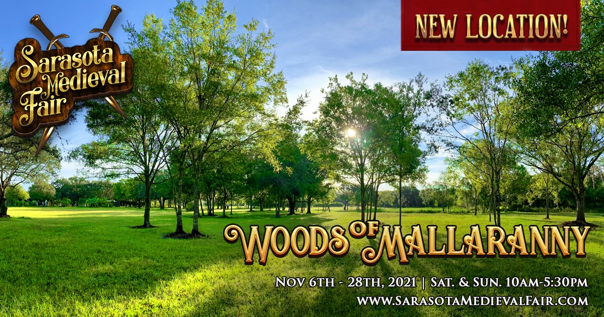 Sarasota Medieval Fair - 2022 - 11/05/2022 Saturday Nov 5 2022 thru Sunday Nov 27 2022 10:00 am thru 5:30 pm. Location: Sarasota Medieval Fair. HUZZAH! The 18th Annual SARASOTA MEDIEVAL FAIR is back! NEW LOCATION! We are so proud to announce the triumphant return of the renowned 18th Annual Sarasota Medieval Fair! The fair will be November 5-27, 2022, running every weekend on Saturday ...