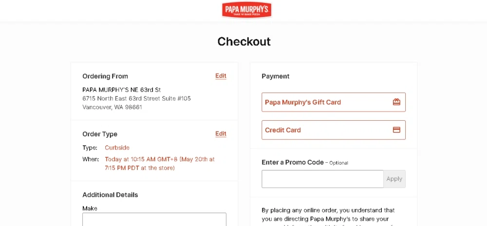 Order Papa Murphy's for Fast Pick Up or Delivery Find a Papa Murphy's near you and start an order online for fast pickup or delivery. Order ahead and skip the line inside!
