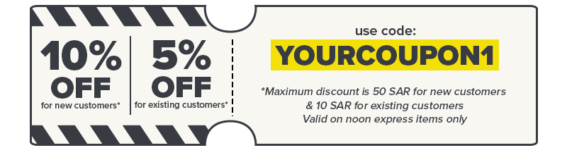 Noon Coupons in Saudi Arabia | Up to 10% off 5% - 10% OFF. OS7. Noon Sale & Offers | Sitewide Noon coupon code Saudi Arabia. Ongoing. Discounts up to 25 Saudi riyal OFF. OS70. 10% Noon Coupon Codes on Noon Express items | For New Users. Ongoing. Up to 50 SAR OFF.